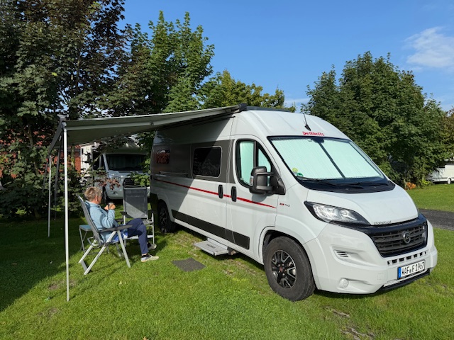 Trotz aller anderen Vorhersagen haben wir Sonne und blauen Himmel beim Camping in Schüttorf. Die laute Reisegruppe aus dem Emsland ist am Sonntagmorgen Gottseidank abgereist.